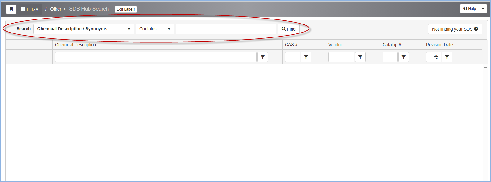 If the search doesn’t result in an exact match, click the Not finding your SDS? button on the top right-hand side of the screen.