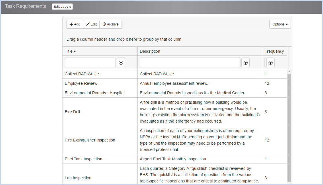 - Enter the Title, Description and Frequency for the task. All are required fields.